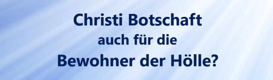 Die Bewohner der Hölle sollten aber die Botschaft des Gottessohnes vernehmen können. Dies geschah in der Weise, dass Engel Gottes auf die Schwelle des Totenreiches traten und laut in diese höllischen Bereiche hineinriefen: “Der Erlöser ist auf dem Wege zu euch! Geduldet euch noch! Christus ist der Erlöser! Er wird in euer Reich eintreten, und so gibt es für euch eine Erlösung!” Die Engel Gottes, die auf der Schwelle des Totenreiches standen, kündigten diese Botschaft mit Posaunenschall an, so dass jene, die sich in den Höhlen der Hölle versteckt hielten, hervorkamen und die Botschaft vernehmen konnten. Jesus hatte die Schau dieses Vorganges gehabt. Er wollte die Seinen doch wieder zu sich zurückholen, und so besaß er das Wissen um dieses Geschehen. (AS: Es gab zu der Zeit, als Christus auf Erden weilte, nicht wenige Bewohner der Hölle, vorwiegend in den höllischen Besserungsstufen, die sehnlichst auf die Befreiung warteten, die ihnen lange immer schon angekündigt worden war.)
