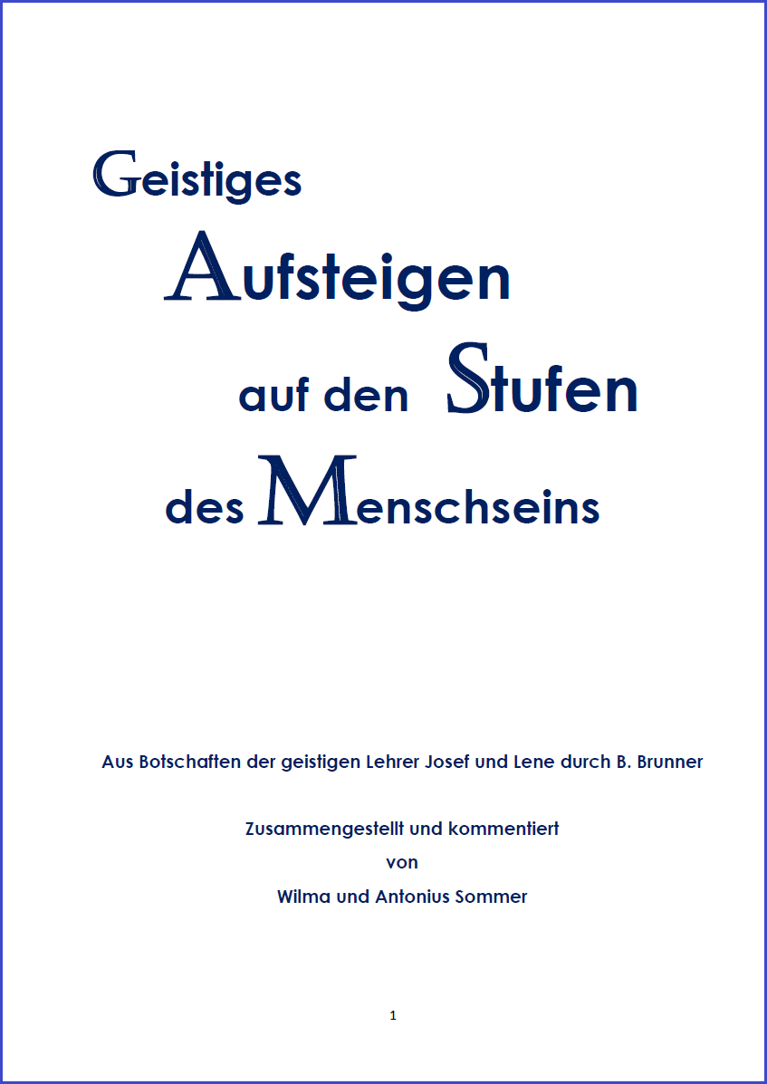 Jeder Einzelne mag sich daraus ableiten, wo er selbst in seinem geistigen Aufstieg steht und worauf es für ihn jetzt besonders ankommt.